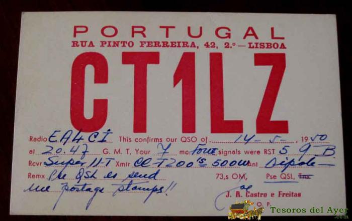 ANTIGUA TARJETA QSL . CT1LZ . LISBOA (PORTUGAL) - AÑOS 50