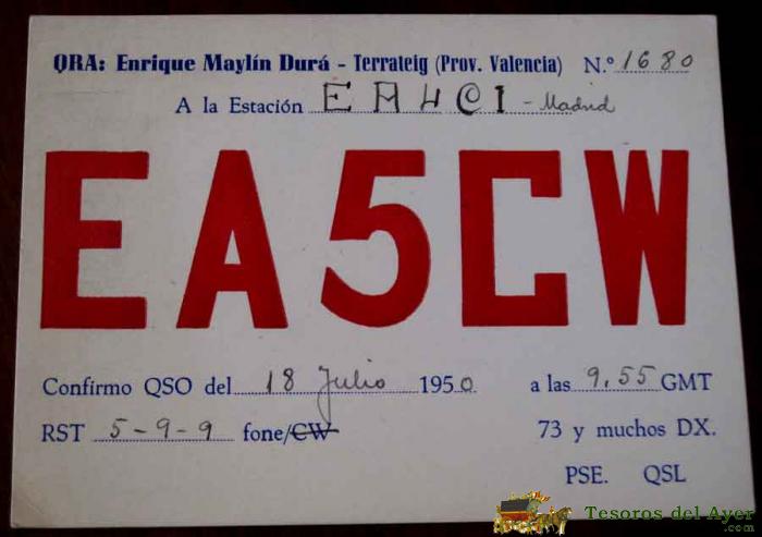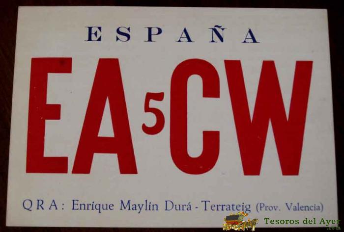ANTIGUA TARJETA QSL - EA5CW - TERRATEIG (VALENCIA) - AÑOS 50