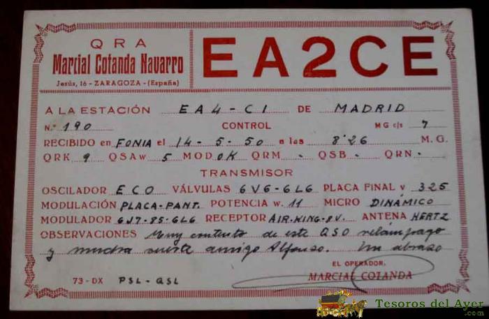 ANTIGUA TARJETA QSL . EA2CE - ZARAGOZA - AÑOS 50