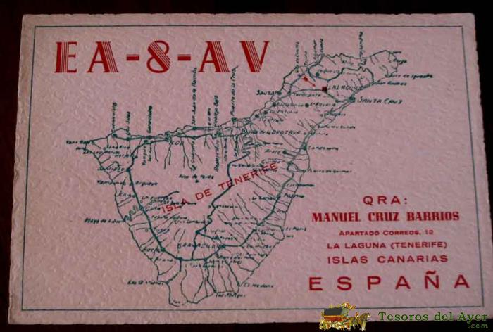 ANTIGUA TARJETA QSL . EA8AV - LA LAGUNA (TENERIFE) - AÑOS 50