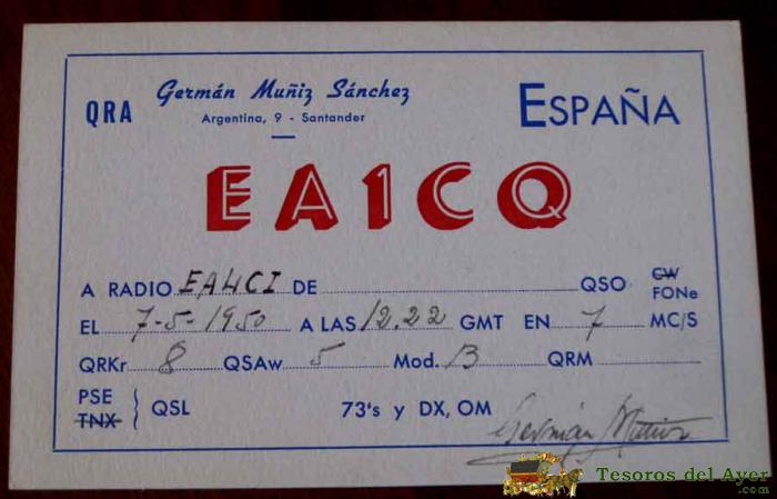 ANTIGUA TARJETA QSL . EA1CQ - SANTANDER - AÑOS 50
