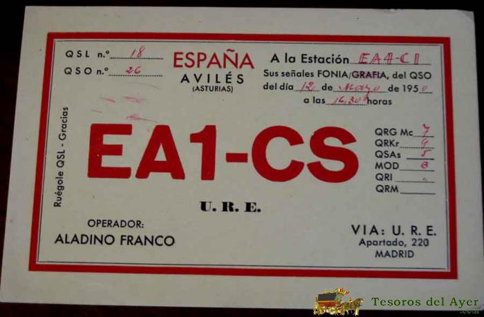 ANTIGUA TARJETA QSL . EA1CS - AVILES (ASTURIAS) - AÑOS 50