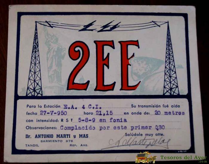 ANTIGUA TARJETA QSL - 2EE - ARGENTINA - AÑOS 50
