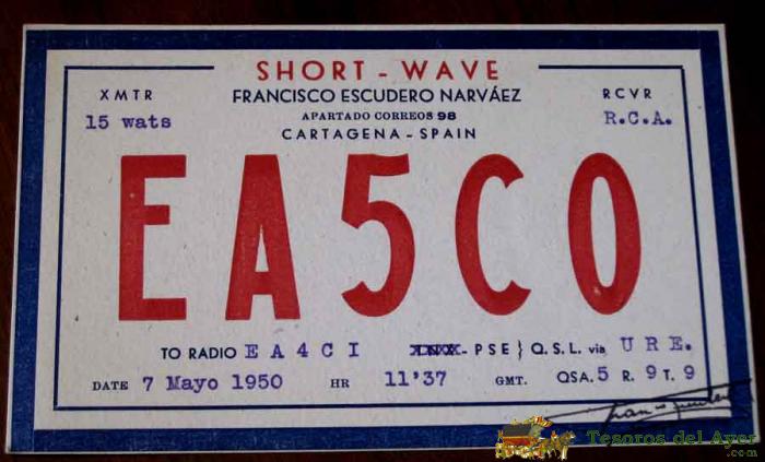 ANTIGUA TARJETA QSL - EA5C0 - CARTAGENA (MURCIA) - AÑOS 50