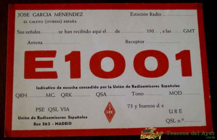 ANTIGUA TARJETA QSL - E1001 - EL CALEYO (OVIEDO) - AÑOS 50