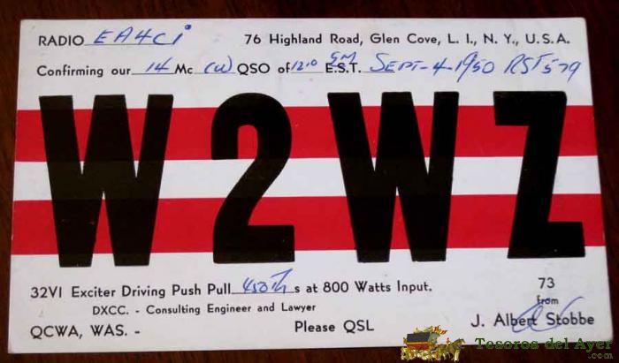 ANTIGUA TARJETA QSL - W2WZ - USA - AÑOS 50
