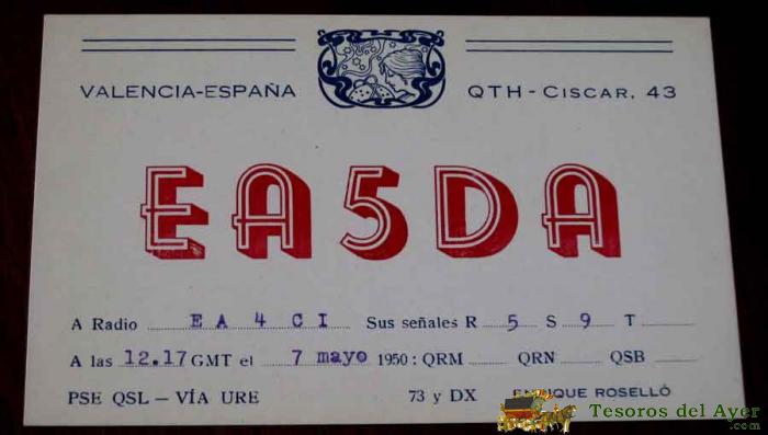 ANTIGUA TARJETA QSL - EA5DA - VALENCIA - AÑOS 50