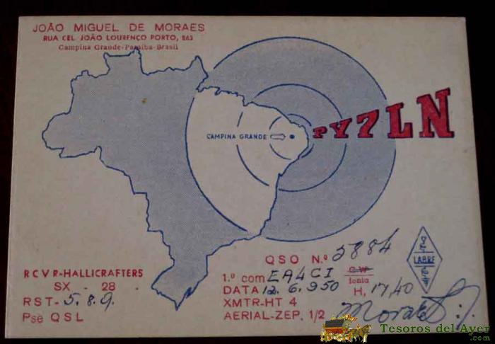 ANTIGUA TARJETA QSL - PY7LN . BRASIL - AÑOS 50