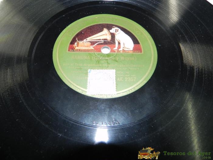 DISCO DE PIZARRA TRÍO ARGENTINO IRUSTA - FUGAZOT - DEMARE - RAMONA / HACEME CASO A MÍ - ED. GRAMÓFONO, AE 2357, TAL Y COMO SE VE EN LAS FOTOGRAFIAS PUESTAS.