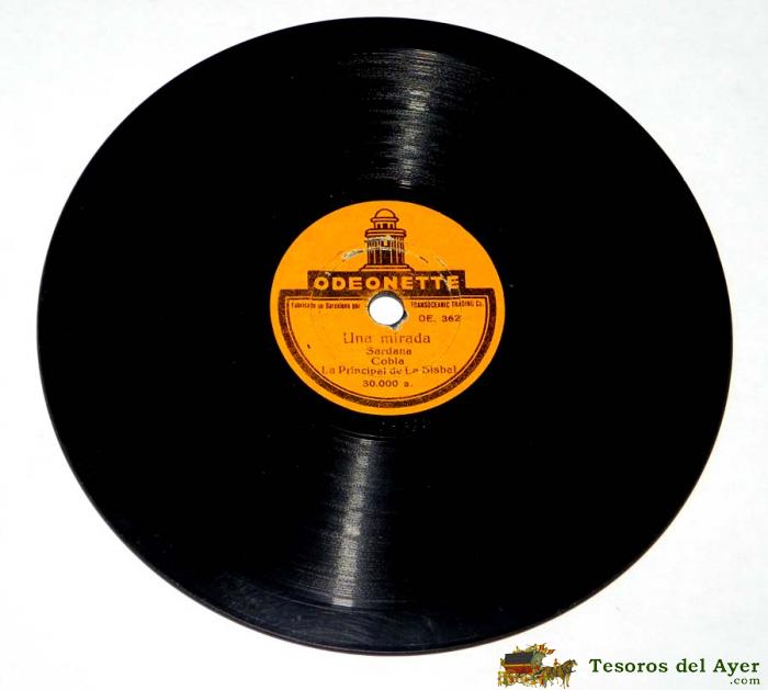 DISCO DE PIZARRA, 15 CM DE DIáMETRO. UNA MIRADA, SARDANA, CANTANT LA FESTA, SARDANA. ODEONETTE, OE 362 Y OE 363, BUEN ESTADO DE CONSERVACION.