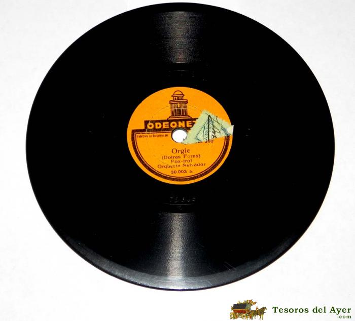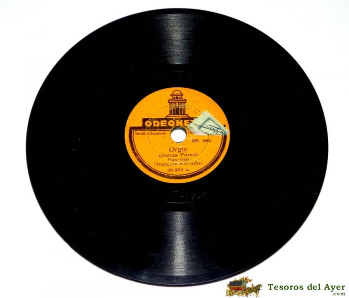 DISCO DE PIZARRA ORGIE / A SOMBRA, FOX TROT-M. CARLOS CALDERON, ED. ODEONETTE, TAMAÑO PEQUEÑO MIDE 15 CMS, OE. 361-360, TAL Y COMO SE VE EN LAS FOTOGRAFIAS PUESTAS.