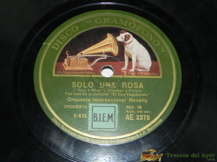 DISCO DE PIZARRA ORQUESTA INTERNACIONAL NOVELTY / SOLO UNA ROSA / LA MARCHA DE LOS VAGABUNDOS - AE. 3370 - DISCO GRAMOFONO.