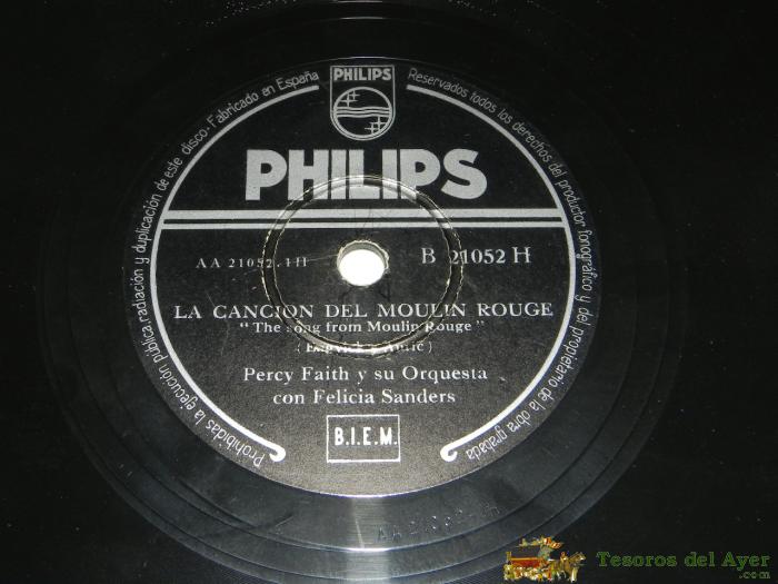 DISCO DE PIZARRA PERCY FAITH Y SU ORQUESTA - LA CANCIÓN DEL MOULIN ROUGE / RAPSODIA SUECA - PHILIPS B 21052 H.