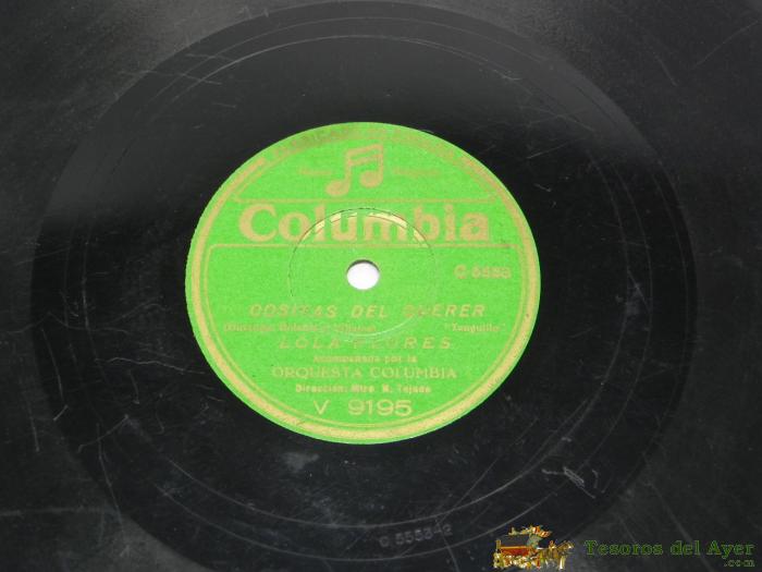 ANTIGUO DISCO DE PIZARRA DE LOLA FLORES. ED. COLUMBIA 9224 - 78RPM - AL VERDE LIMON / OLE DOLORES.