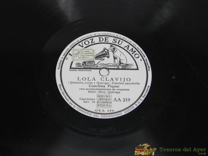 DISCO DE PIZARRA DE CONCHITA PIQUER - LOLA CLAVIJO / ROMANCE DE LA OTRA, CON ACOMPAñAMIENTO DE ORQUESTA DIREC. MTRO. QUIROGA, AA 219.