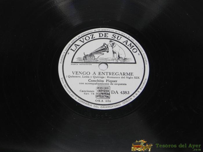 DISCO DE PIZARRA DE CONCHITA PIQUER - VENGO A ENTREGARME / DOñA MARIQUITA DE LOS DOLORES, DA 4383, ED. LA VOZ DE SU AMO.