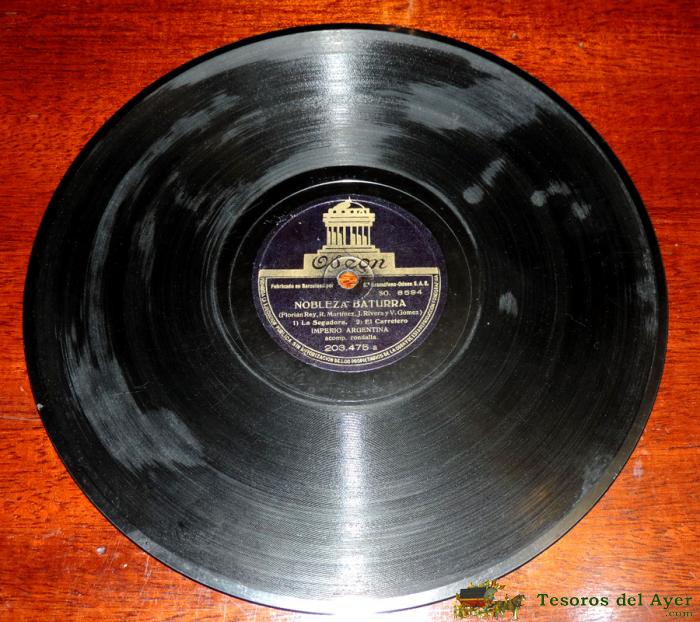 IMPERIO ARGENTINA - NOBLEZA BATURRA: BIEN SE VE / LA SEGADORA / EL CARRETERO - ODEON 203.475. CON ACOMPAñAMIENTO DE RONDALLA, DISCO DE PIZARRA