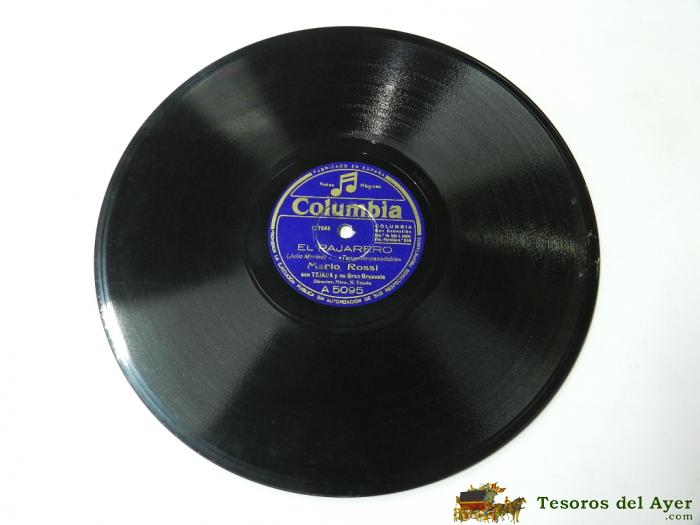 DISCO DE PIZARRA DE MARIO ROSSI: EL PAJARERO / LISBOA ANTIGA, CON TEJADA Y SU GRAN ORQUESTA. (J. GALHARDO, A. DO VALE Y R. PORTELA), ED. COLUMBIA, BUEN ESTADO.
