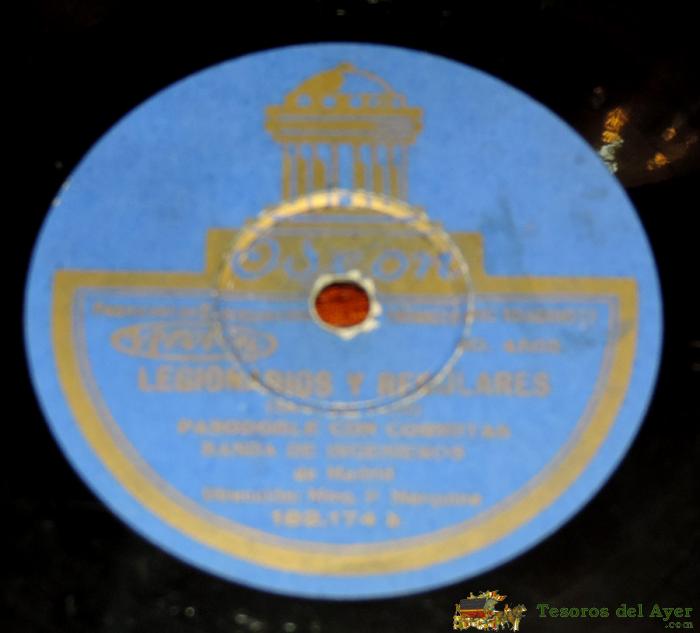 DISCO 78 RPM. BANDA DE INGENIEROS DE MADRID, ODEON 182.174, FAGINA, PASODOBLE CON CORNETAS, MAESTRO P. MARQUINA, LEGIONARIOS Y REGULARES, PASODOBLE CON CORNETAS, DISCO DE PIZARRA, BUEN ESTADO DE CONSERVACION.