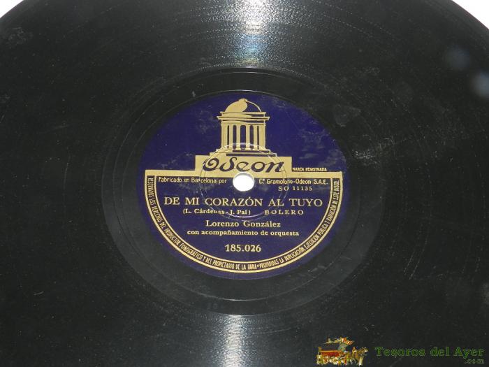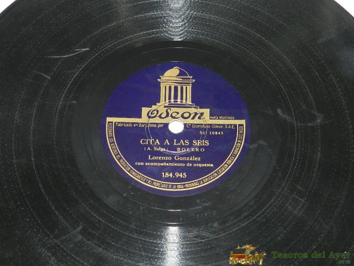 DISCO DE PIZARRA LORENZO GONZALEZ / CITA A LAS SEIS / HOLA, QUE TAL (ODEON 184.945).