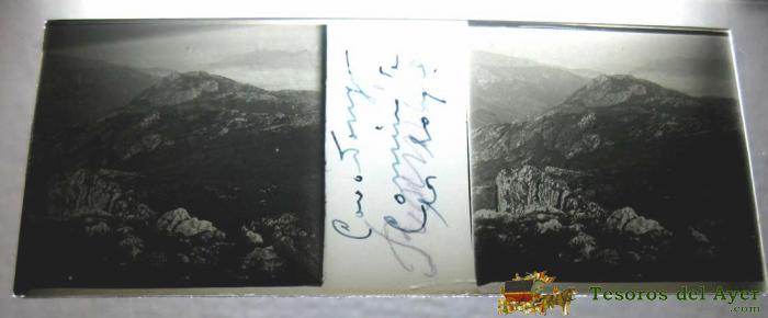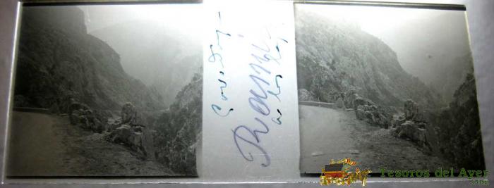 ANTIGUA FOTOGRAFIA ESTEREOSCOPICA DE COVADONGA - ASTURIAS - EN CRISTAL - CARRETERA DE LOS LAGOS - MIDE 10,7 X 4,4 CMS