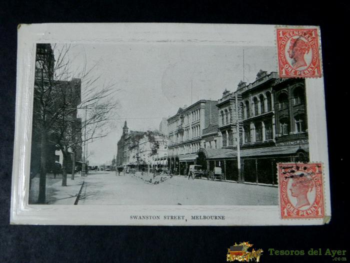 ANTIGUA POSTAL, MELBOURNE, CALLE SWANSTON, EL TEATRO, NO CIRCULADA