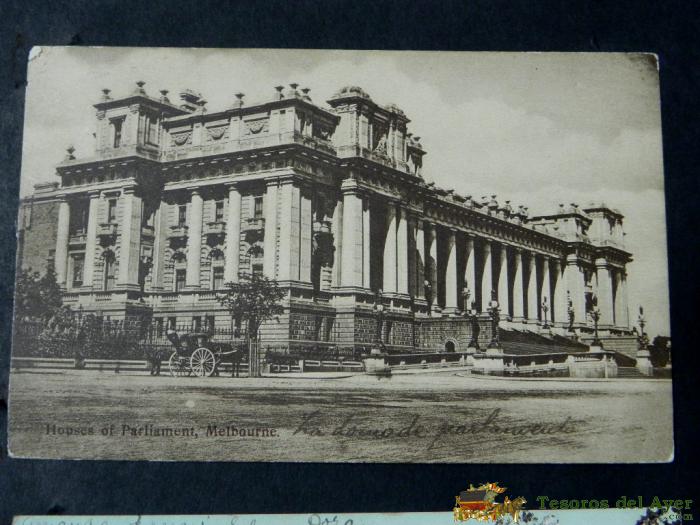 ANTIGUA POSTAL, MELBOURNE, CASAS DEL PARLAMENTO, CIRCULADA