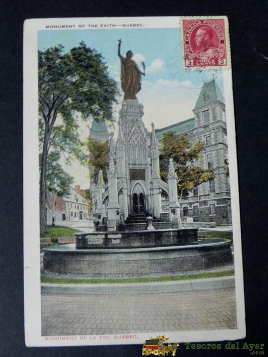 ANTIGUA POSTAL, QUEBEC, MONUMENTO A LA FE, CIRCULADA