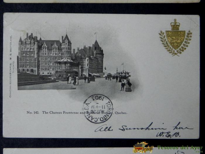 ANTIGUA POSTAL, QUEBEC, EL CASTILLO FRONTENAC, SIN DIVIDIR, CIRCULADA