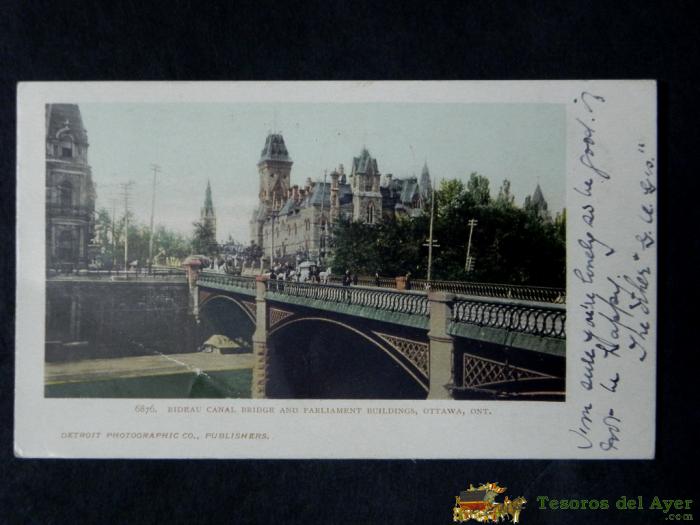 ANTIGUA POSTAL, OTTAWA, PUENTE DEL CANAL Y EDIFICIOS DEL PARLAMENTO, SIN DIVIDIR, CIRCULADA