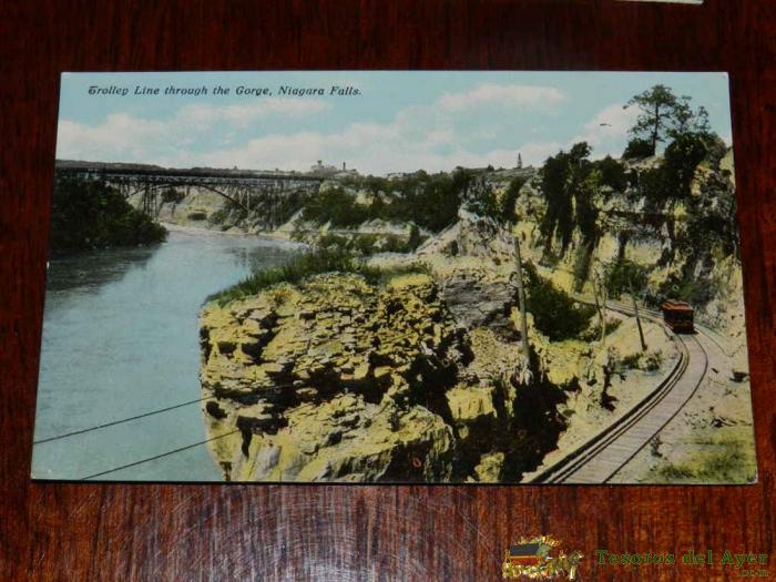 ANTIGUA POSTAL, MONTREAL, CARRO DE LA LíNEA DE LA GARGANTA, LAS CATARATAS DEL NIáGARA, SIN CIRCULAR, OLD POSTCARD, MONTREAL, TROLLEY LINE THE GORGE, NIAGARA FALLS, WITHOUT CIRCULAR