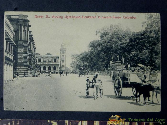 ANTIGUA POSTAL, COLOMBO, CALLE DE LA REINA, VISTA DEL FARO Y ENTRADA A LA CASA DE LA REINA, NO CIRCULADA
