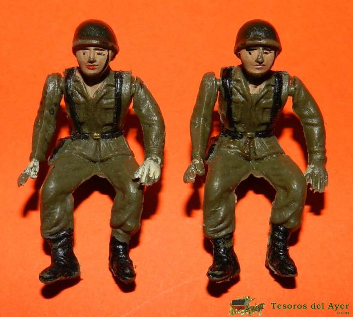 2 SOLDADOS SENTADOS ARTICULADOS DE TEIXIDO, DE PLASTICO, TAL COMO SE VE EN LAS FOTOGRAFIAS PUESTAS