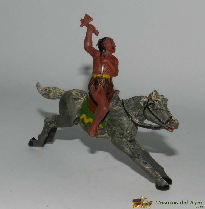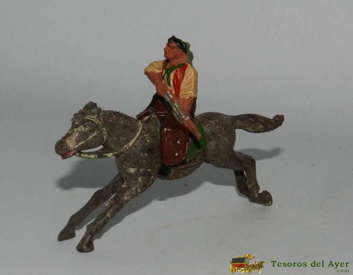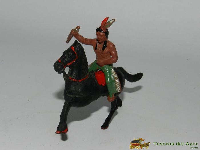 INDIO A CABALLO, REALIZADO EN GOMA, POSIBLEMENTE REAMSA, AñOS 50, TAL Y COMO SE VE EN LAS FOTOGRAFIAS PUESTAS. EL INDIO MIDE 5 CMS.
