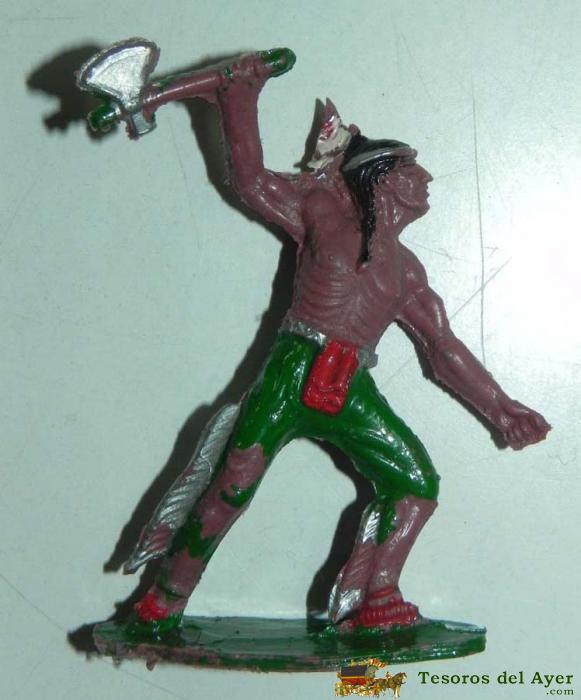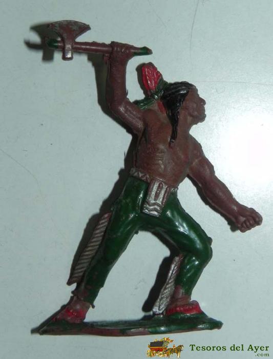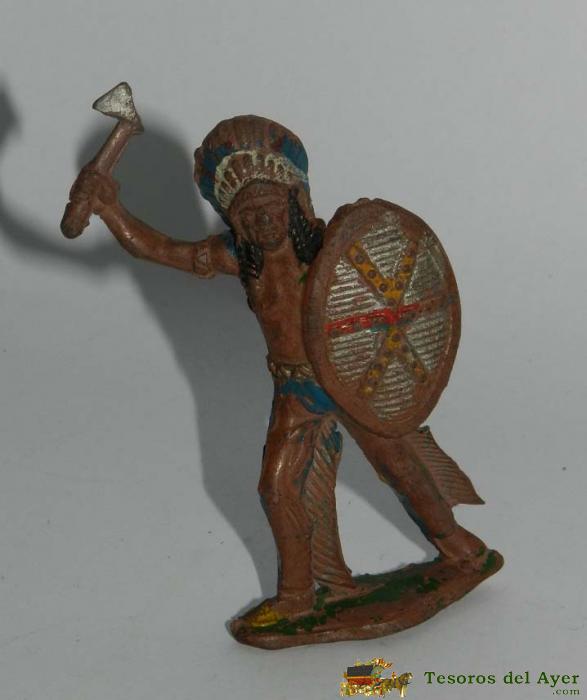 INDIO A PIE DE LAFREDO, REALIZADO EN GOMA, CON HACHA Y ESCUDO, AñOS 50, MIDE 6,5 CMS.