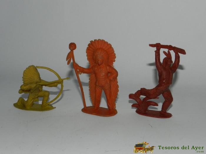 3 INDIOS DE PLASTICO, TAL Y COMO SE VE EN LAS FOTOGRAFIAS PUESTAS, EL MAS GRANDE MIDE 9 CMS Y EL MAS PEQUEÑO 6 CMS.
