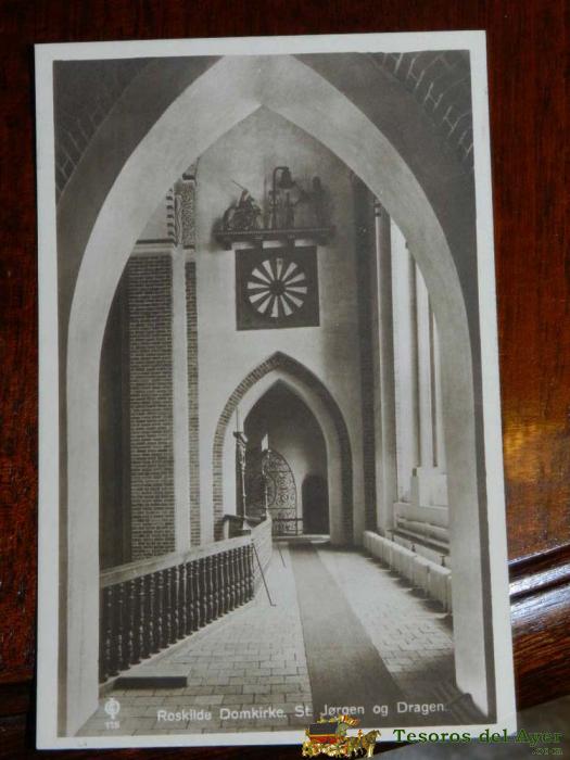 ANTIGUA FOTO POSTAL, HELSINGOR, LA CATEDRAL DE ROSKILDE ST. JøRGEN Y. DRAGóN, SIN CIRCULAR, GAMMELT FOTO POSTKORT, HELSINGOR, ROSKILDE DOMKIRKE ST. JøRGEN OG. DRAGEN, UCIRKULERET