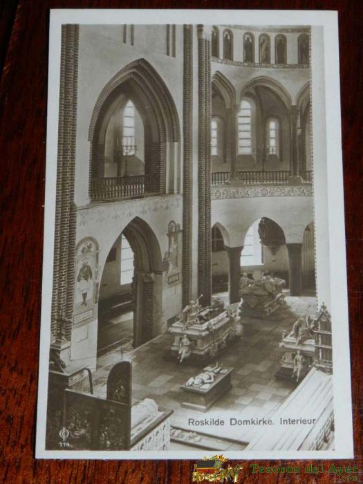 ANTIGUA FOTO POSTAL, HELSINGOR, LA CATEDRAL DE ROSKILDE INTERIOR, SIN CIRCULAR, GAMMELT FOTO POSTKORT, HELSINGOR, ROSKILDE DOMKIRKE INTERIEUR, UCIRKULERET