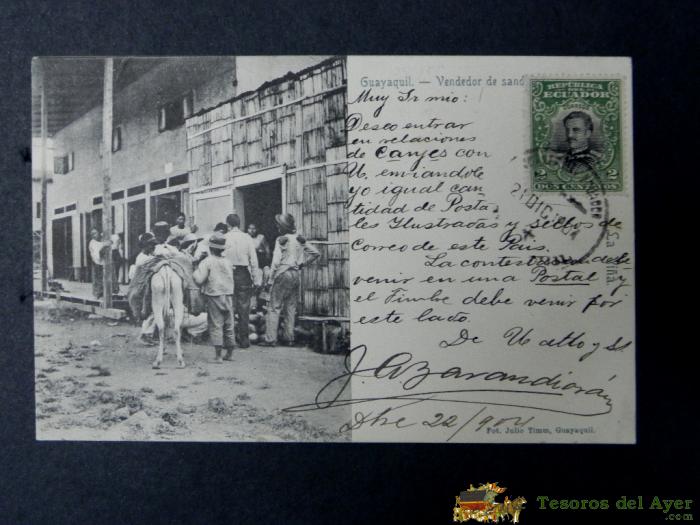 ANTIGUA POSTAL, GUAYAQUIL, VENDEDOR DE SANDIAS, SIN DIVIDIR, CIRCULADA