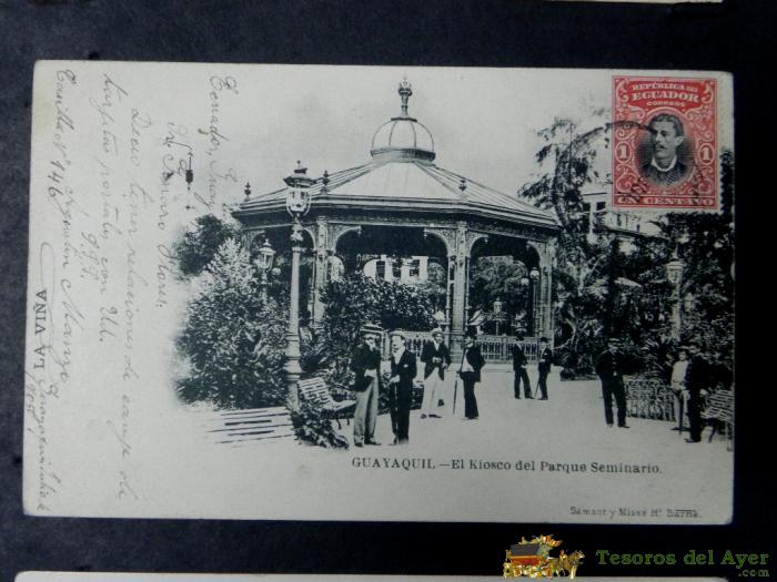 ANTIGUA POSTAL, GUAYAQUIL, EL KIOSCO DEL PARQUE SEMINARIO, SIN DIVIDIR, CIRCULADA