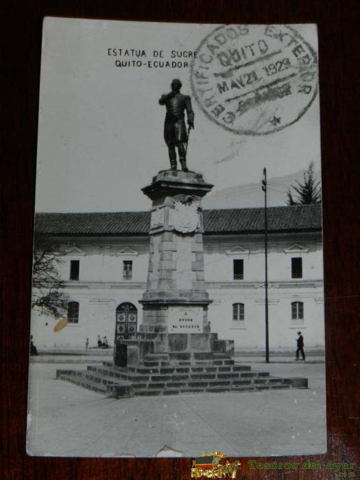 ANTIGUA FOTO POSTAL, QUITO, ESTATUA DE SUCRE, CIRCULADA, QUITO, STATUE OF SUCRE, CIRCULATED