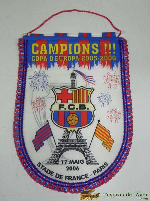 ANTIGUO BANDERIN, FUTBOL CLUB BARCELONA, CAMPEONES COPA DE EUROPA, 2005-2006, MIDE 44 X 30 CMS