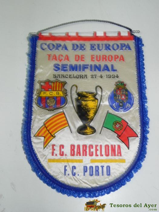 ANTIGUO BANDERIN, FUTBOL CLUB BARCELONA, F.C OPORTO, SEMIFINAL COPA DE EUROPA, 27-04-1994, MIDE 44 X 30 CMS