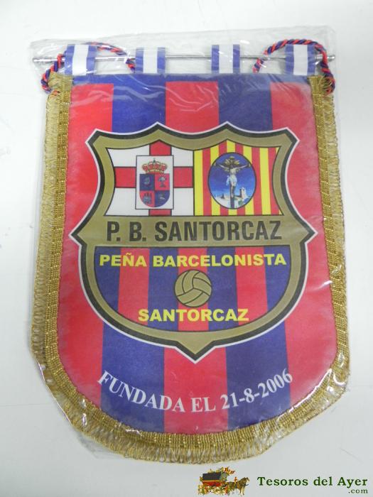ANTIGUO BANDERIN, FUTBOL CLUB BARCELONA, PEñA BARCELONISTA SANTORCAZ, 21-08-2006, MIDE 35 X 26 CMS