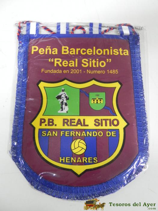 ANTIGUO BANDERIN, FUTBOL CLUB BARCELONA, PEñA BARCELONISTA REAL SITIO, 2001, MIDE 35 X 26 CMS