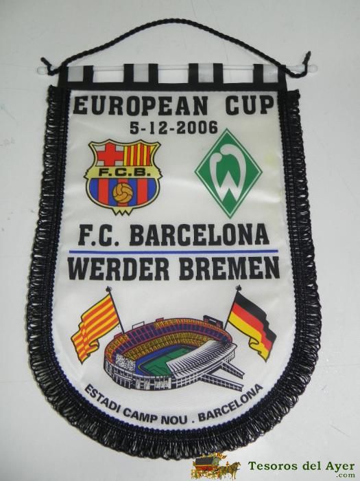 ANTIGUO BANDERIN, FUTBOL CLUB BARCELONA, WERDER BREMEN, COPA DE EUROPA, 05-12-2006, MIDE 35 X 26 CMS