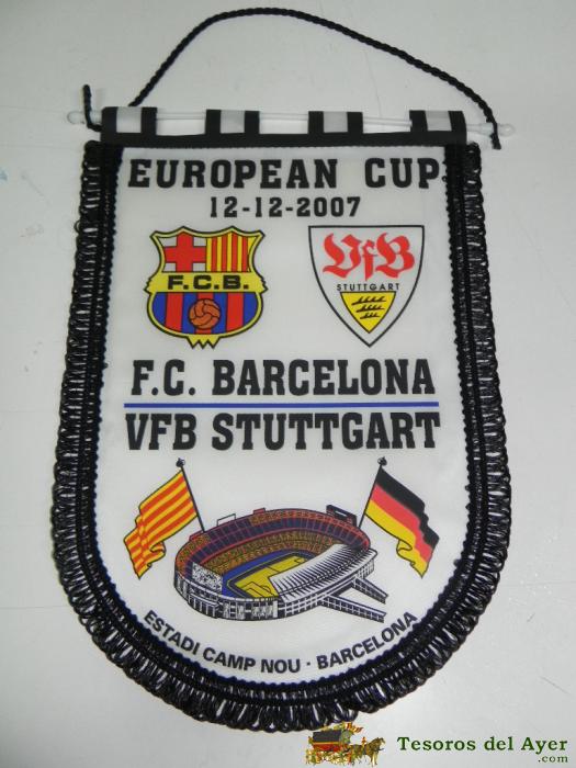 ANTIGUO BANDERIN, FUTBOL CLUB BARCELONA, VFB STUTTGART, COPA DE EUROPA, 12-12-2007, MIDE 35 X 26 CMS