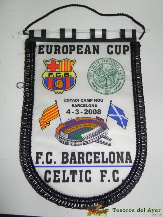ANTIGUO BANDERIN, FUTBOL CLUB BARCELONA, CELTIC F.C., COPA DE EUROPA, 04-03-2008, MIDE 35 X 26 CMS