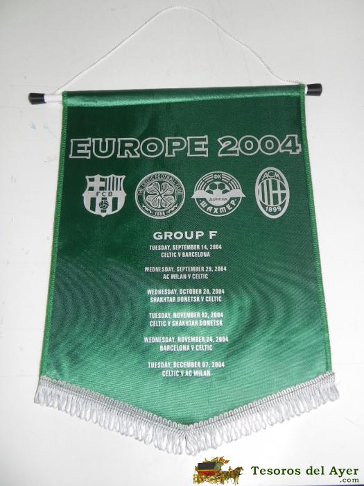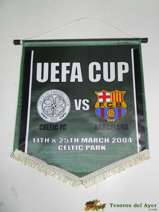 ANTIGUO BANDERIN, FUTBOL CLUB BARCELONA, CELTIC F.C., COPA DE LA UEFA, 2004, MIDE 35 X 26 CMS