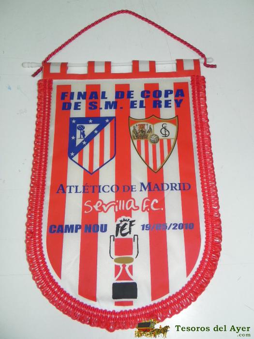 ANTIGUO BANDERIN, FUTBOL CLUB BARCELONA, SEVILLA F.C., FINAL DE COPA DEL REY, 19-05-2010, MIDE 35 X 26 CMS